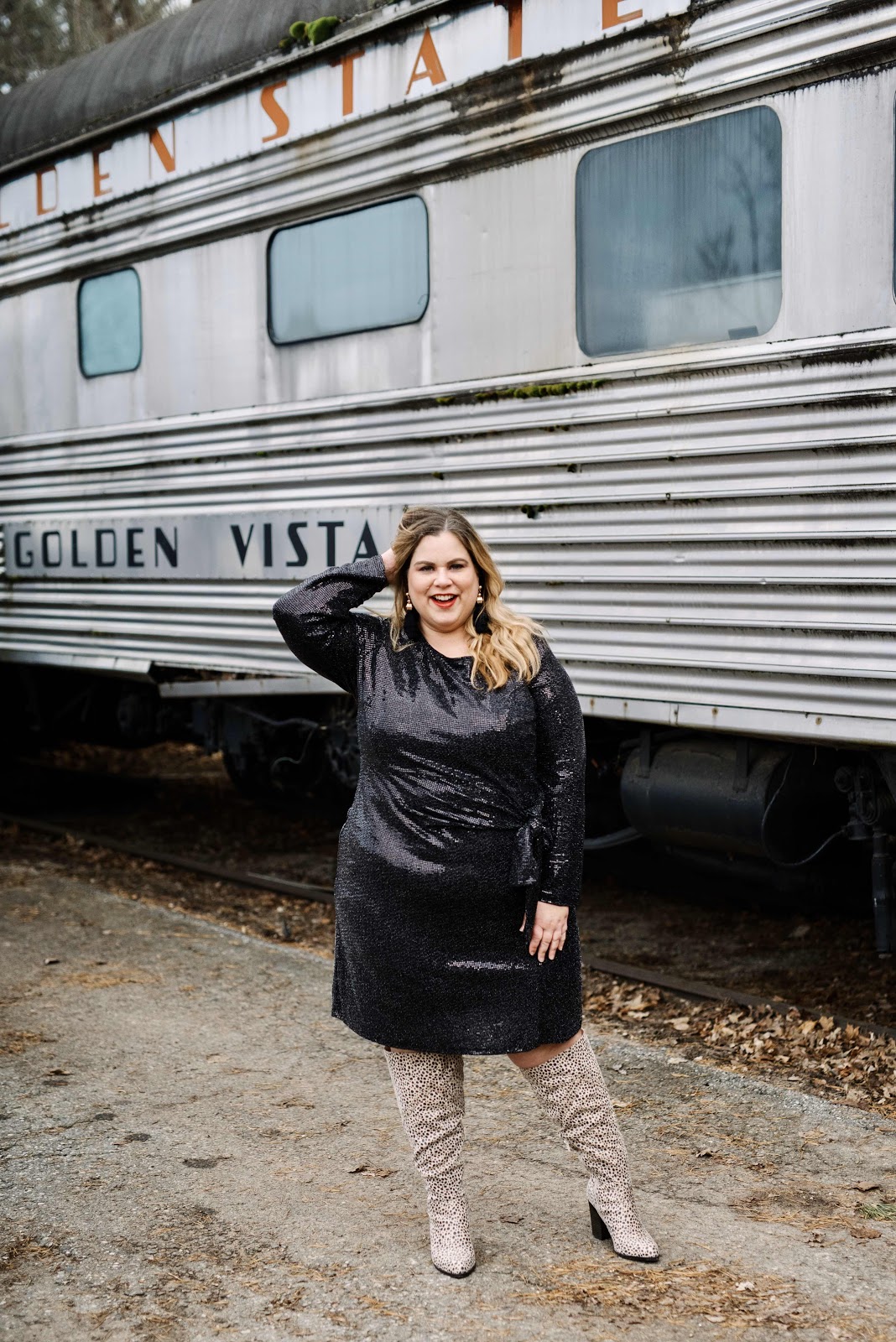 Now on to today’s look- I love a great sequin dress! I saw this dress and immediately thought I wanted to do something different and fun with it. I paired these animal print boots with it and I’m in love! I love the mix of textures and styles- dressy and casual, sequins and animal print.
